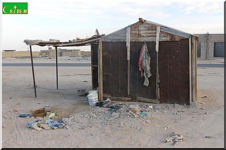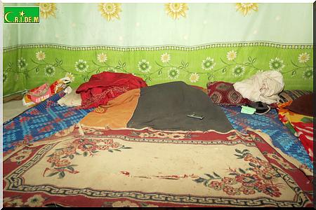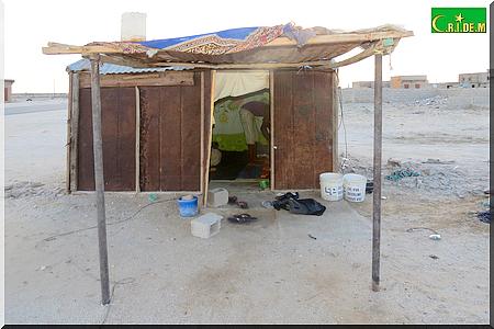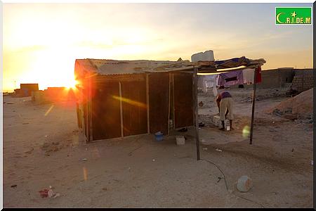 Notre interlocuteur nous conduit dans une baraque, dressée au milieu du dépôt de briques. Le décor est plus que sobre : une lampe à néon, deux jerricans, une natte pour la prière, une couverture, des vêtements éparpillés ça et là , des coussins.