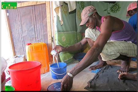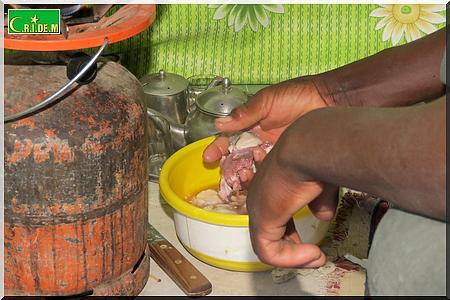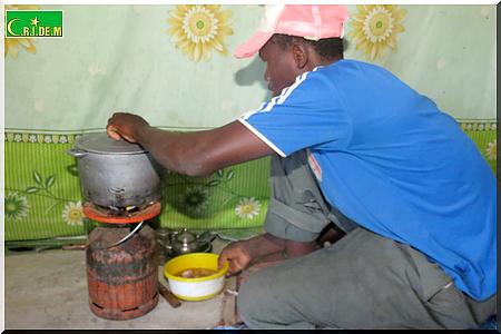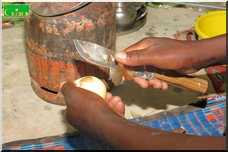 A l’intérieur du logis, on est accueilli par le sympathique Mamoudou, 18 ans. Il est le cordon bleu du groupe. Sur le feu, la marmite bouillonne à fond. Pendant ce temps-là , Mamoudou épluche un oignon.