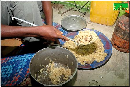 Au menu du repas de ce soir pour la rupture du jeûne, des pâtes. A l’autre bout de la baraque, Mohamed prépare déjà le zrig, et bien sûr les dattes. Dans ses yeux, on lit grandement le plaisir de servir les autres.