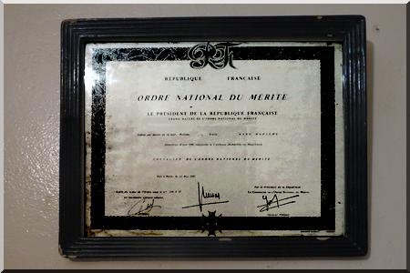 Avant de me séparer d’elle, Diallo Wane Marième a tenu à me faire montrer un tableau accroché au mur du salon de sa maison qu’elle a transformé en orphelinat. Le 12 mai 1997, elle recevait l’insigne de l’Ordre National du Mérite de la République Française.