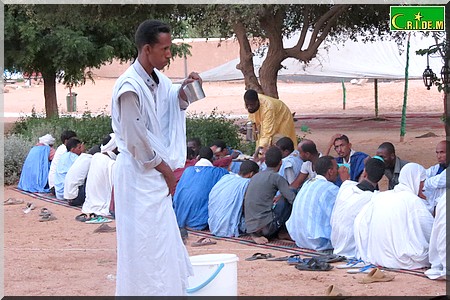 A quelques mètres de là , les volontaires de l’association Almoustaqbal font des va-et-vient sans arrêt pour servir de la soupe aux légumes, des dattes, du zrig. Bouha Ould Sidi, un des membres de l’association, veille au grain, donne des instructions. "Chaque jour, des centaines de personnes viennent manger ici. Il faut donc avoir l’œil sur tout pour que ceux qui viennent ici se sentent à l’aise comme chez eux", explique le jeune homme.