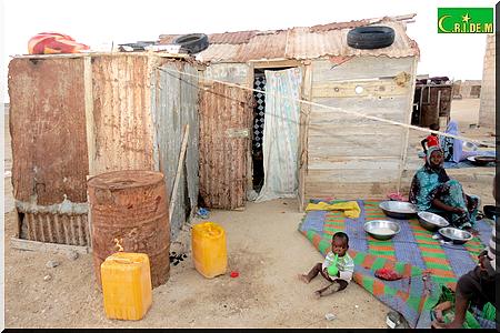 Ici, père, mère, belle-fille, petits-fils partagent en tout trois baraques. Il y’a quelques années, le vieux Tigh Ould Sara, qui vivait avec sa famille aux kebbas de Mendès, a bénéficié gratuitement d’une distribution de lots de terrains. Grâce à l’un de ses fils, qui est d’ailleurs maçon, la famille avait réussi à construire deux chambres en béton. Puis, un jour, son fils est tombé malade. Depuis, les travaux ont été arrêtés.
