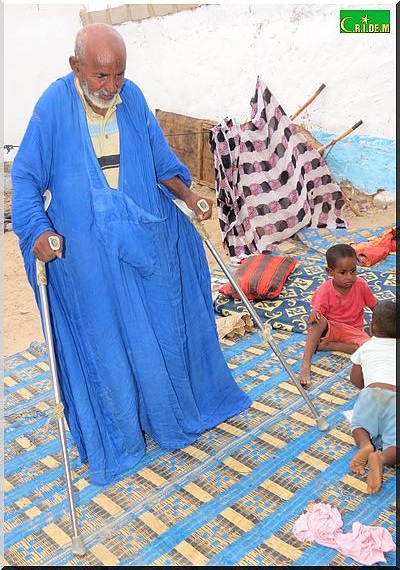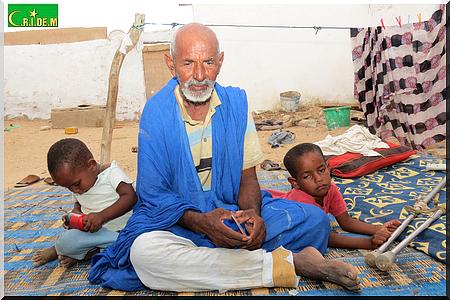 Ici, dans cette famille, on ne vit que des recettes de la mendicité de papa. Il y’a quelques années, en 2008, Ahmed Mahmoud Mohamed Elkory procédait au coffrage pour la construction d’une terrasse, lorsqu’il a cru assister au dernier jour de sa vie. En effet, les planches avaient lâché. Il y’eut des morts et des survivants, dont Ahmed Mahmoud Mohamed Elkory. Il s’en sortira avec l’incapacité de ne plus disposer des planches. Il réussira tout de même à construire deux chambres dont l’une qu’il partage avec toute sa famille.