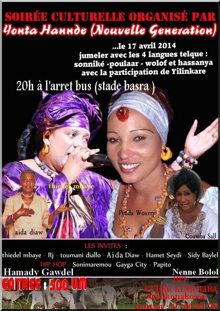 Les amoureux de hip hop seront bien servis avec les prestations de RJ, Sonimarémou, Gayga City ou encore Papito. La troupe Yilinkara, qui a explosé le Stade Olympique de Nouakchott, lors de la troisième édition du Festival International des Soninké (FISO), sera aussi de cette soirée culturelle.