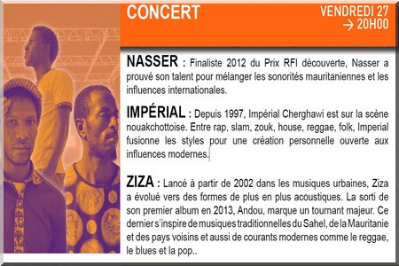 23-02-2015 21:45 - Nasser, Impérial Cherghawi et Ziza en Concert le 27 février à l'Institut Français de Mauritanie