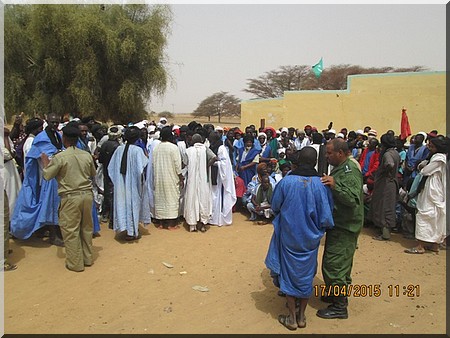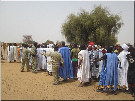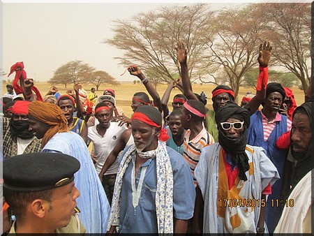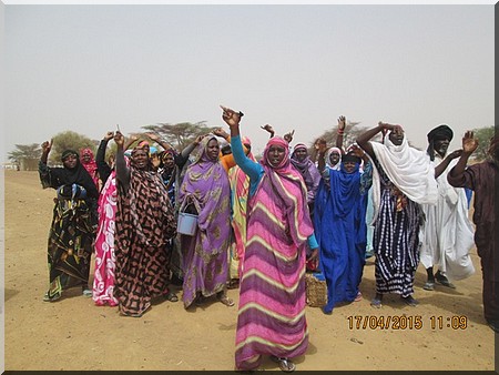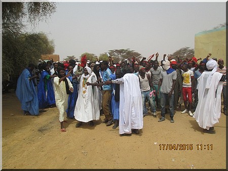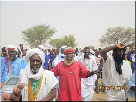 Elfoutiyou - Ils étaient environ 600 personnes (des femmes, des jeunes et des vieux) à battre le macadam, ce vendredi 17 avril 2015 dans le village de Darel Barka aux cris de "Ravdines", "Ravdines", "Ravdines" en langue de Molière "Nous rejetons" et de "Do Ko Minendièye", "Do Ko Minendièye", "Do Ko Minendièye" signifie en français "ici, c’est pour nous".