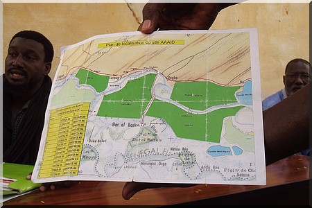 Pour Kane Tidjane, ancien Maire de Tekane, c’est ce projet abandonné « qui est revenu en 2015 sous une autre forme. » Interpellé sur la différence entre les 3200 hectares officiels et les chiffre donnés par les « représentants des ayant droits », les membres de la commission ont déclaré que « le représentant de AAAID sur le terrain a parlé de travaux sur une zone couvrant beaucoup plus que 3200 hectares. » a l’appui de cette affirmations, ils ont brandi une carte « reçue du représentant de l’AAAID. »