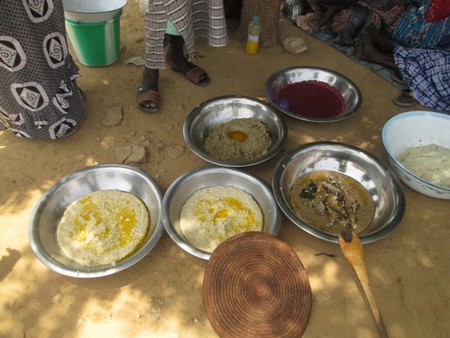 Très tôt le matin, en synchronisation avec 60 autres localités du monde, les femmes ont commencé la préparation de quatre plats sur la base des produits agricoles locaux. Il s’agit d’un plat de pâtes composées de la farine du mil et de différentes variétés de poissons d’eau douce mélangés avec le beurre de vache transformé appelé "Nébam Sirmé" (premier) ; un plat composé de pâtes préparées à partir de brisures de Sorgho et de poissons secs d’eau douce (deuxième) ; pâtes fabriquées à partir de farine de Niebbé (haricot) avec du sucre (troisième) et enfin, une bouillie fabriquée à base de l’oseille de guinée appelé "Larou".