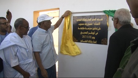Agence Tadamoun - Le Directeur Général de l'Agence Nationale Tadamoun pour la Lutte contre les Séquelles de l'Esclavage, l'Insertion et la Lutte contre la Pauvreté, Me Hamdi Ould Mahjoub, a présidé, lundi 06 novembre 2017, dans la localité de Lejwad, relevant de la commune de Bangou, moughataa de Néma, la cérémonie d'inauguration d'une école complète.
