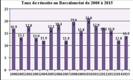 En effet depuis 1981, le taux de réussite n’a pas atteint la moyenne (50%), l’année précédente -1980- les résultats étaient appréciables puisque le taux de réussite a atteint 56.02%. De plus, c’est en 1992 que le pays a dépassé le premier quartile (25%) avec 28.16% comme taux de réussite.