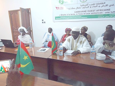 L'Authentique - Le droit à la terre, à l’eau et aux semences ! Voilà le plaidoyer que la société civile membre de la Convention Globale des Luttes pour la Terre et l’Eau Ouest-africaine vient d’entamer, à travers la deuxième édition de sa Caravane de sensibilisation qui sillonnera du 10 au 30 novembre 2018 la Guinée, la Côte d’Ivoire, le Ghana, le Togo et le Bénin. La Mauritanie, à travers ROSA, a lancé samedi 3 novembre 2018 au siège de la « Rencontre Citoyenne » à Nouakchott sa caravane, qui rejoindra, à travers ses représentants, son point de ralliement à Bamako.