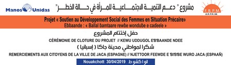 Rappel : Le projet qui vient de s’achever fait suite au projet MAU/69912 de 2015-2016 financé par Manos Unidas avec l’appui des citoyennes et citoyens de la ville de Madrid (Espagne) pour 300 femmes des quartiers périphériques de Nouakchott (budget 14 000 000 MRO (dont près de