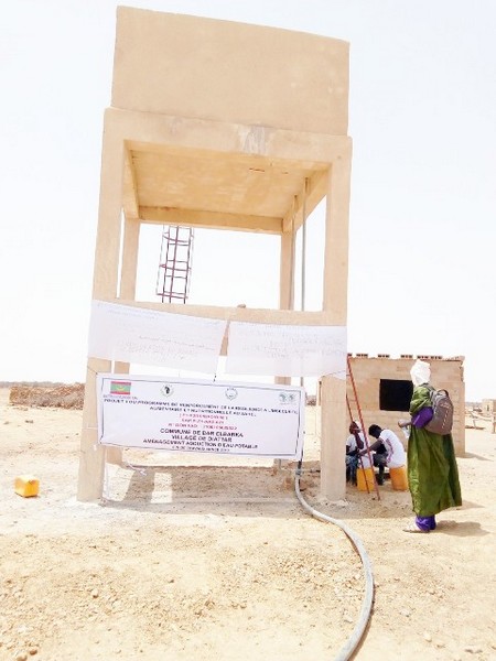 Un château d’eau de 20 m3, des conduites de distribution d’eau en PEHD 63 PN 10 d’une longueur de 2000 mètres et d’un équipement d’un champ photovoltaïque de puissance minimale 2600 Wc ainsi que de tous les accessoires. Un financement du gouvernement Mauritanien et de la Banque Africaine de Développement.