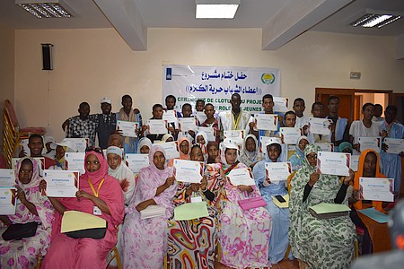 le délégué régional de la jeunesse de la Wilaya de Nouakchott Sud, la représentante du Ministère des affaires sociales de l’enfant et la famille de a wilaya de Nouakchott Sud, le président d’honneur de l’AFDC, le conseiller chargé de la société civile au niveau de la commune d’Arafat, des responsables des ONG, les formateurs et animateurs, les jeunes bénéficiaires du projet et d’autres invités.