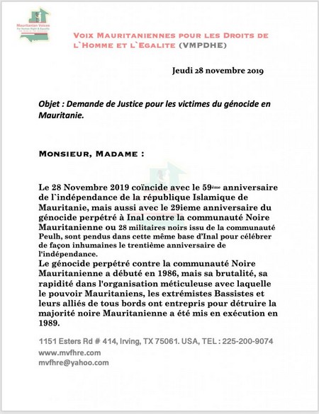 30-11-2019 11:54 - Demande de Justice pour les victimes du génocide en Mauritanie