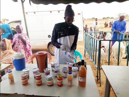 Il progresse et s’arrête encore au niveau d’un autre stand, celui de Hadiya (Touldé) qui fait l’élevage de poulet et de moutons.