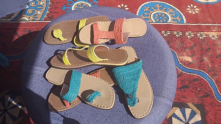 « Vu l’état actuel des ordures dans notre ville, nous avons pensé faire quelque chose pour valoriser ces déchets, pousser la communauté à ne plus lancer les déchets dans les rues, mais à les garder pour pouvoir les transformer […] Nous transformons les sachets en plastique et les papiers qui sont des déchets. Après chaque assainissement, nous ramassons tous les déchets en plastique et les papiers. Pour les sachets plastiques, nous les mettons dans de l’eau de Javel. Après quelques minutes, on les sèche. Après, nous les utilisons pour en tricoter des chaussures, des chapeaux, des ceintures […] Nous avons beaucoup de commandes pour les chaussures. Pour les papiers, nous faisons aussi la même chose. Nous les transformons en colliers, en boucles d’oreilles qui se vendent surtout dans les foires, mais pour les chaussures, ce sont des commandes qui viennent d’un peu partout, les femmes aiment surtout les chaussures », explique El Berye Baba.