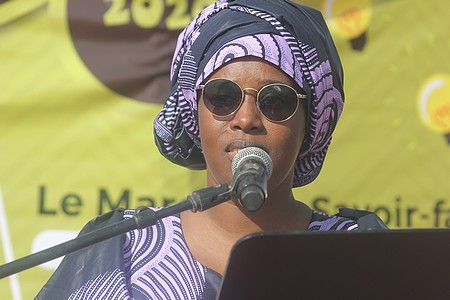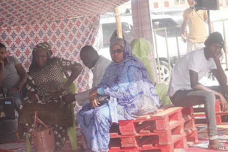 « Monsieur le Maire, on va découvrir Aïssata qui est assise ici. Aïssata fait des boubous et des voiles ». Nous sommes sous l’une des tentes dressées à cette occasion, micro à la main, Dieynaba Touré, chargée du programme pour le compte du GRDR, fait la présentation de Aïssata Oumar Sow, une personne aveugle.