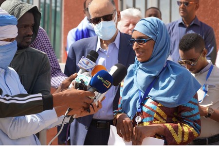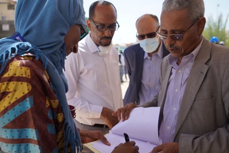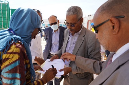 Cet acte qui vient appuyer les efforts des Autorités nationales dans la lutte contre le Covid-19, a été scellé -devant un public imposant- par le Vice-président de la société chargé des relations extérieures, Monsieur Brahim M’Bareck en présence des secrétaires généraux du ministère de la Santé Mme Halima Ba Yahya et du Ministère du Pétrole, de l’Énergie et des Mines.