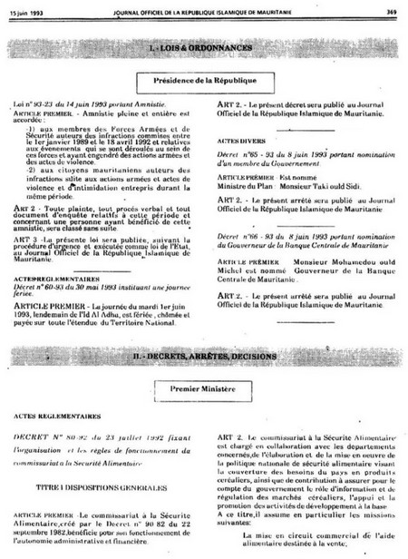 4. Arrêté 3 : la présente loi sera publiée suivant, la procédure d’urgence et exécutée comme loi d’état, au journal officiel de la République Islamique de Mauritanie.