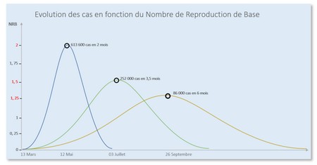 Lorsque NR est faible, le nombre de personnes infectées est faible et le moment où les cas sont à leur plus gros Pic sont étirés dans le temps, ce qui permet aux autorités d’avoir suffisamment le temps d’agir.