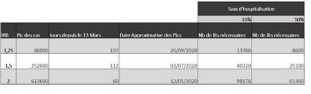 1. Avec un NRB très faible et constant, on est en mesure de gérer l’épidémie (à condition d’avoir suffisamment de lits) dans un temps plus long et le Pic de cas sera plus faible.