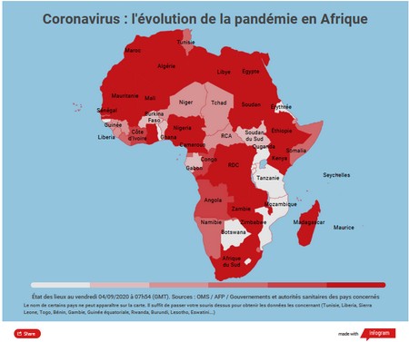 Carte interactive de l’épidémie de Covid-19 en Afrique