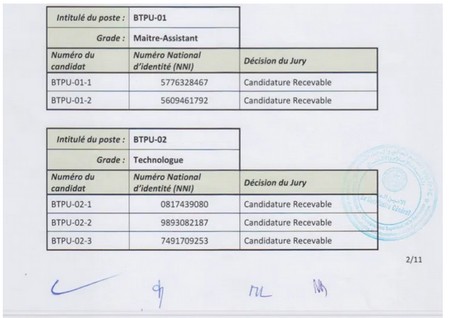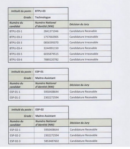 Cette fois-ci sur le concours de recrutement de 20 enseignants au profil de l’école supérieure polytechnique en juillet 2020, seuls les NNI sont rendus publics pas les noms et les prénoms.