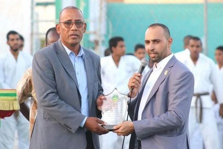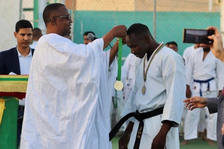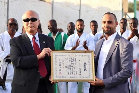 Tout juste après son discours l'ambassadeur du Japon pays a remis un bouclier honorifique décerné par le ministère japonais des affaires étrangères au président de la Fédération de Karaté en récompense des efforts déployés par la fédération pour la pratique et le développement de cette discipliner en Mauritanie.