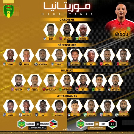 La Mauritanie affrontera les Mozambicains le jeudi 24, avant d'en découdre avec les Libyens le mardi 29 mars, à Nouakchott.
