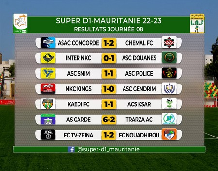 Cette 8e journée a été notamment marquée par le carton plein de l’AS Garde face à à Trarza AC (6-2). FC Chemal qui a battu ASAC Concorde (2-1) occupe la troisième place (19 points).