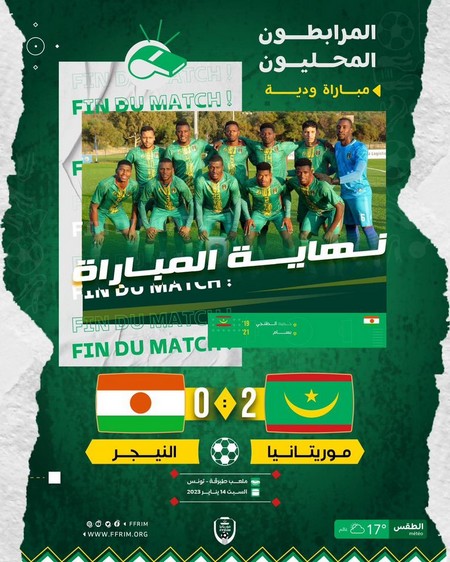 14-01-2023 18:47 - Préparation CHAN 2023 : la Mauritanie marche sur le Niger en l’emportant 2-0