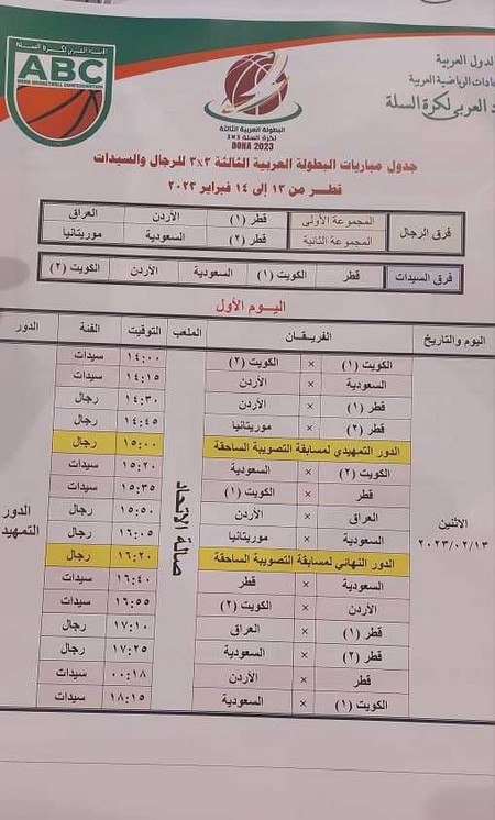 Rim Sport - La troisième édition du Championnat arabe basket 3x3 débute ce lundi à Doha.