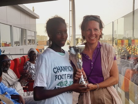 Tandis que la diplomate allemande a remis le trophée de Championne (U-17) au capitaine de l’Asc Amam . La capitaine de l’Asc Amam (U-15) s’est revue remettre son trophée par le sélectionneur national, Amir Abdou.