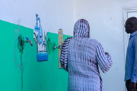 À Sebkha, une borne fontaine communautaire a été installée à Kouva et est désormais gérée par un comité de femmes.