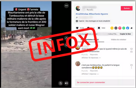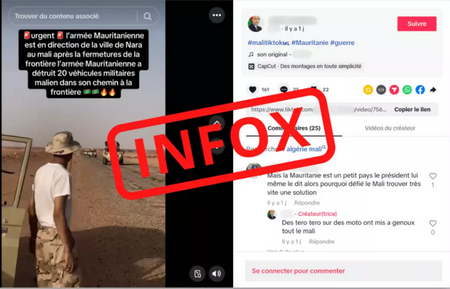 Derrière cette désinformation, on retrouve un obscur compte TikTok francophone créé en 2021. La plupart de ces contenus sont des infox faisant croire à un affrontement direct entre Bamako et Nouakchott. Ce récit fictionnel vise à dénigrer l’armée malienne et à attiser les tensions entre les deux voisins.