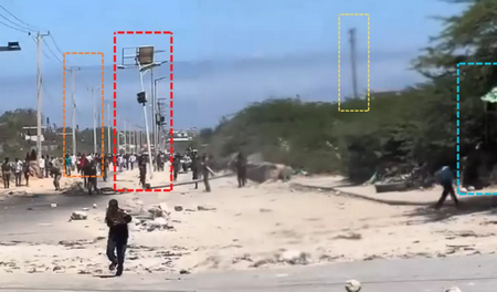 Grâce à une recherche par image inversée, nous avons retrouvé cette vidéo sur des comptes Facebook basés à Mogadiscio, en Somalie. En nous appuyant sur les éléments visuels les plus marquants, la route, les lampadaires, la végétation, nous avons pu géolocaliser précisément la scène, dans le district de Dayniile, en périphérie de la capitale.