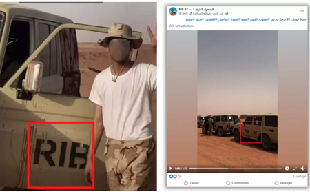 Vérification faite, la vidéo a été filmée en Libye, par un soldat de l'Armée nationale libyenne. L'abréviation RIB, peinte sur la portière avant gauche du véhicule, indique qu’il s’agit d’une unité spéciale, chargée de la sécurité des frontières sud de la Libye.
