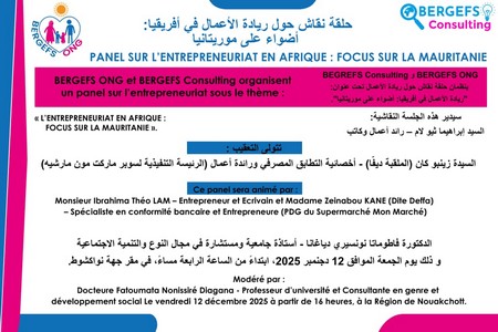 Le panel, organisé sous le thème « entrepreneuriat en Afrique : focus sur la Mauritanie », a eu lieu le 12 décembre au siège du Conseil régional de Nouakchott.
